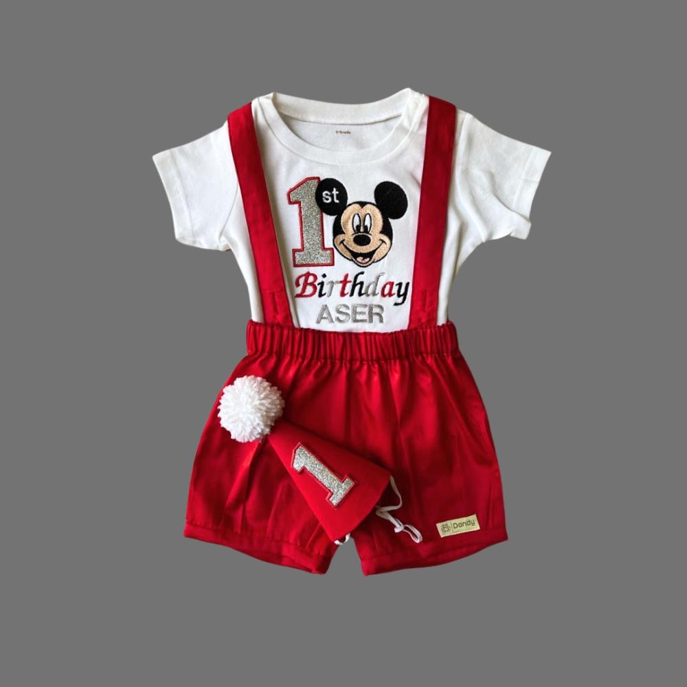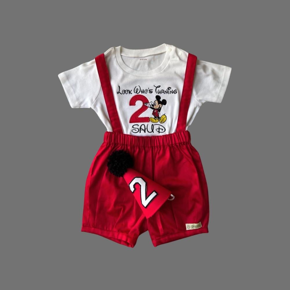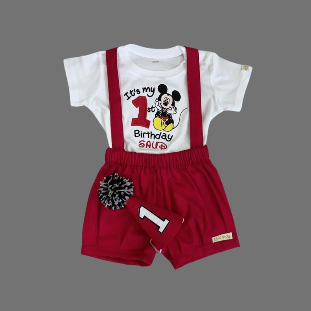 جعل طفلك يبدو أنيقًا ومميزًا مع بدلة ولادي باللون الأحمر بشخصية ميكي ماوس!