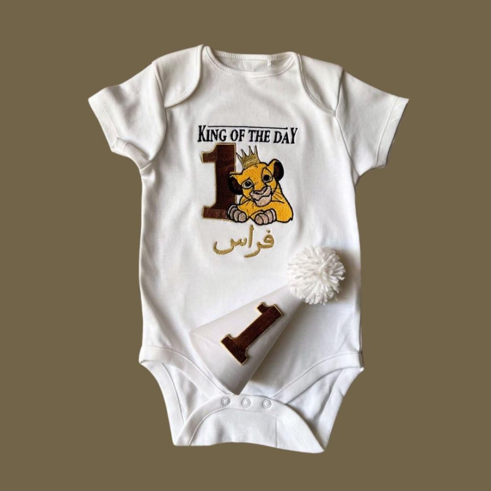 بودي سوت مواليد مصنوع من القطن الناعم والمريح، مناسب للأطفال من عمر 6 شهور إلى عمر سنتين. يتميز بتصميم جذاب مستوحى من شخصية الأسد الملك المحببة ، يوفر هذا البودي السوت حرية الحركة والراحة للطفل في هذه المرحلة العمرية، مع إغلاق عملي بالضغطات لتسهيل تغيير الحفاضات. مثالي للارتداء اليومي و أيضاً للاحتفال البسيط بعيد الميلاد أو كهدية مميزة للأمهات الجدد.