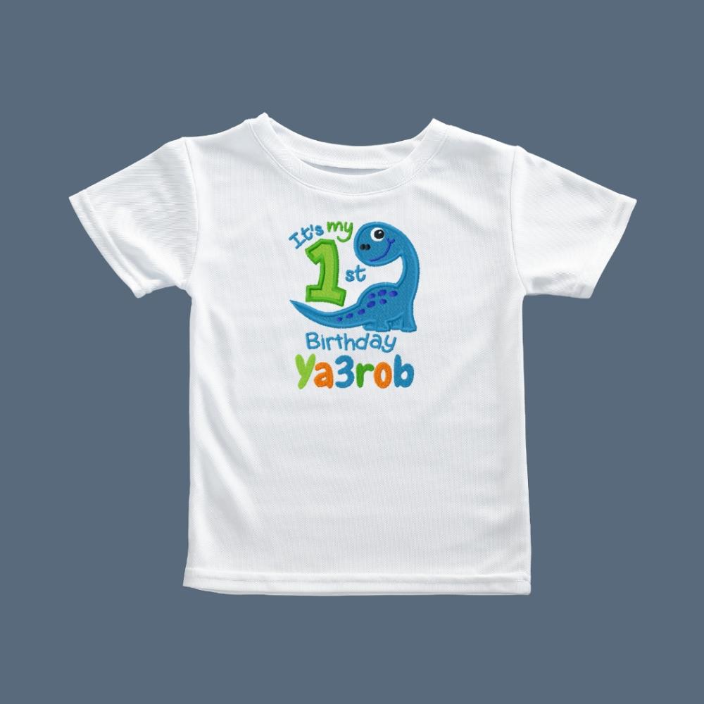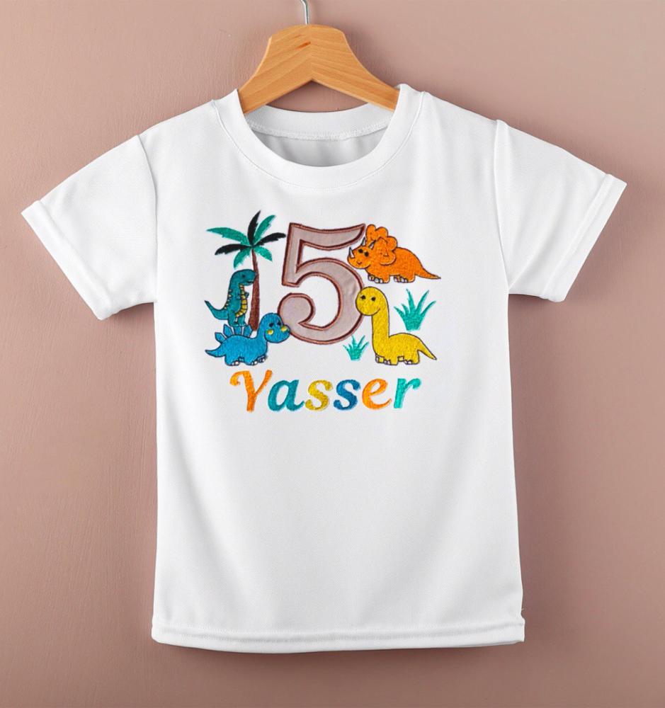 تيشيرت أبيض ناعم مصنوع من قطن 100% بتصميم مرح لديناصورات ملونة، مثالي للأطفال من عمر 1 إلى 6 سنوات. يوفر لطفلك الراحة طوال اليوم ويضفي لمسة من الحيوية على مظهره.