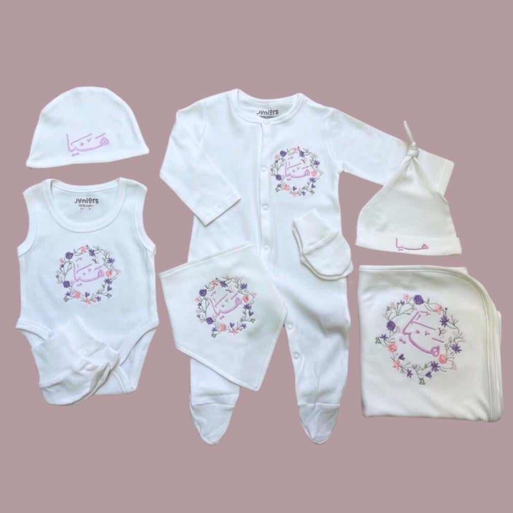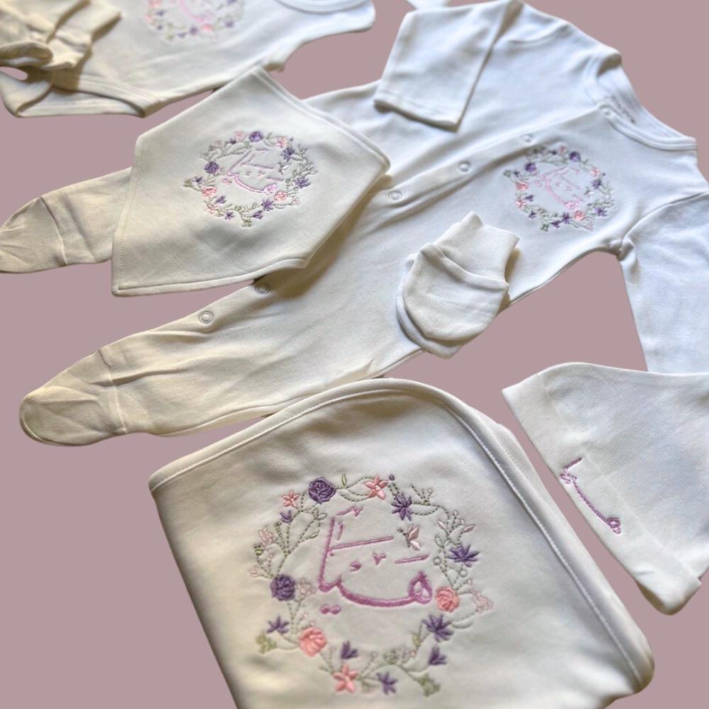 كل قطعة في الطقم مصنوعة من أجود أنواع القطن الناعم والمناسب لبشرة حديثي الولادة. تصميمه العملي والأنيق يجعله خيارًا مثاليًا للهدايا أو لاستقبال مولودتك بأناقة ورعاية مثالية.