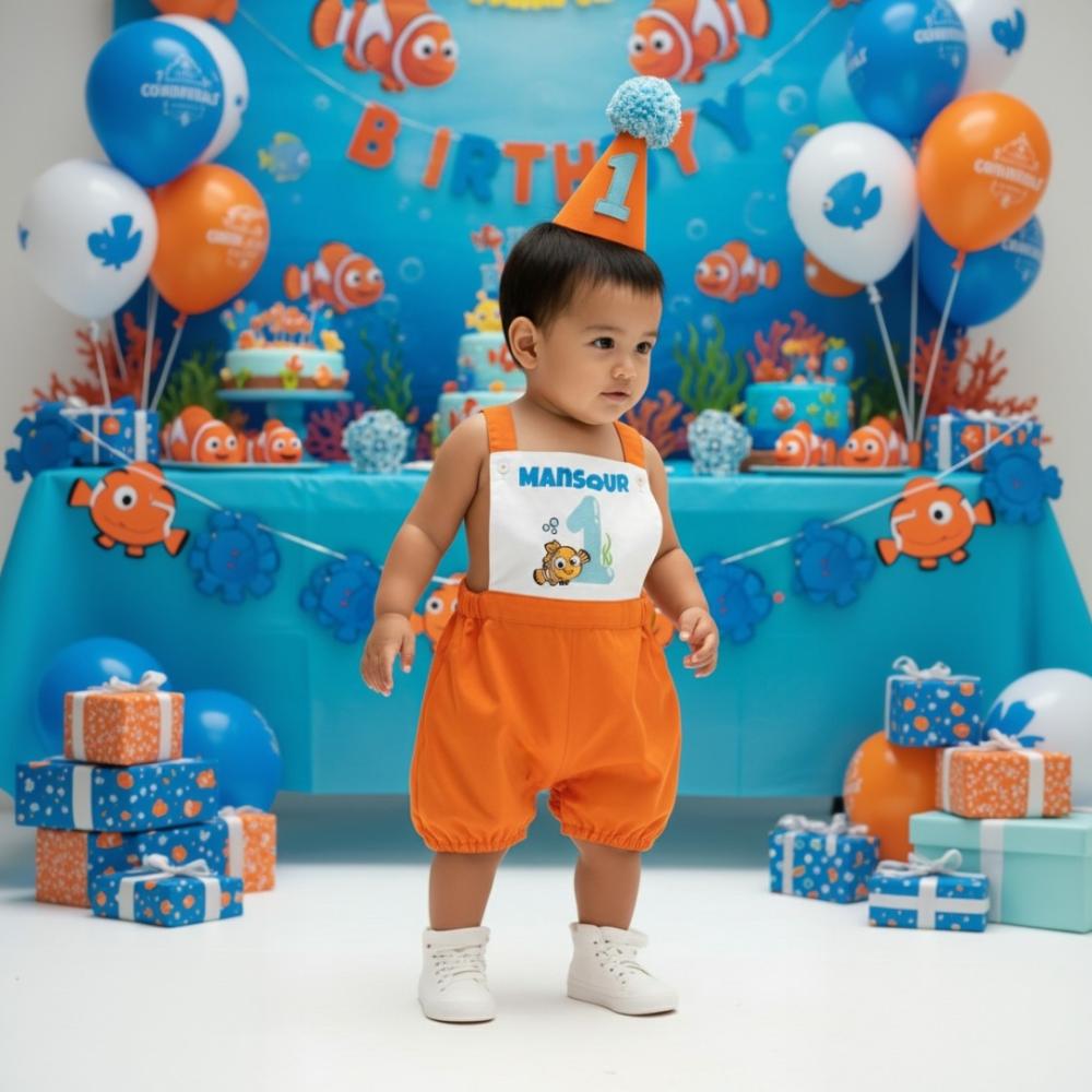 قطعة مصممة خصيصًا للاحتفالات والتصوير، بتفاصيل مطرزة وواضحة تعكس عالم نيمو المحبوب ليظهر طفلك بإطلالة فريدة في يومه الكبير.