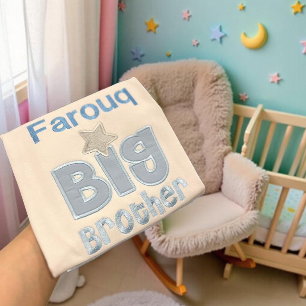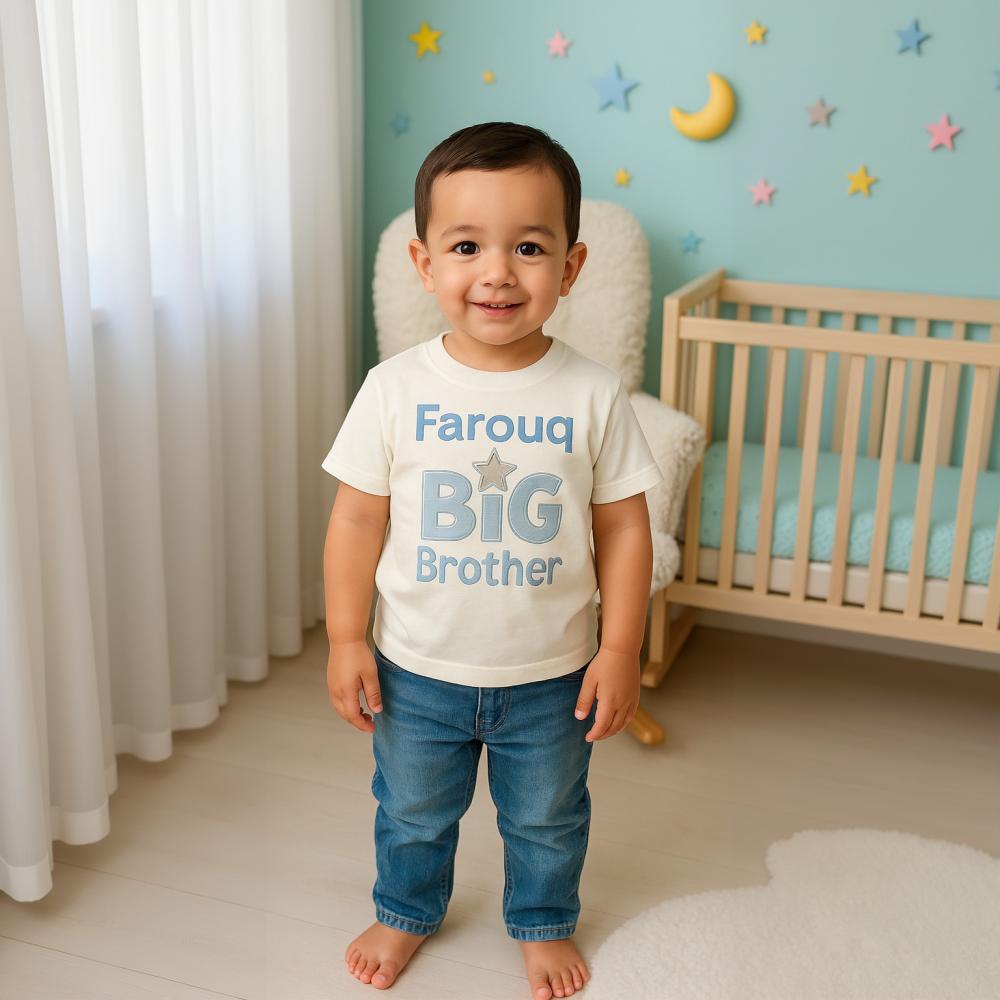تيشيرت ولادي مميز يعبر عن فخر الأخ الأكبر! مصنوع من قطن 100% عالي الجودة ليمنح طفلك الراحة طوال اليوم. يتميز بتصاميم متنوعة تناسب مختلف الأذواق وتُبرز دور الأخ الأكبر بأسلوب مرح ومميز. متوفر بمقاسات تناسب الأعمار من 1 إلى 14 سنة، ليكون اختيارًا مثاليًا لكل مناسبة!