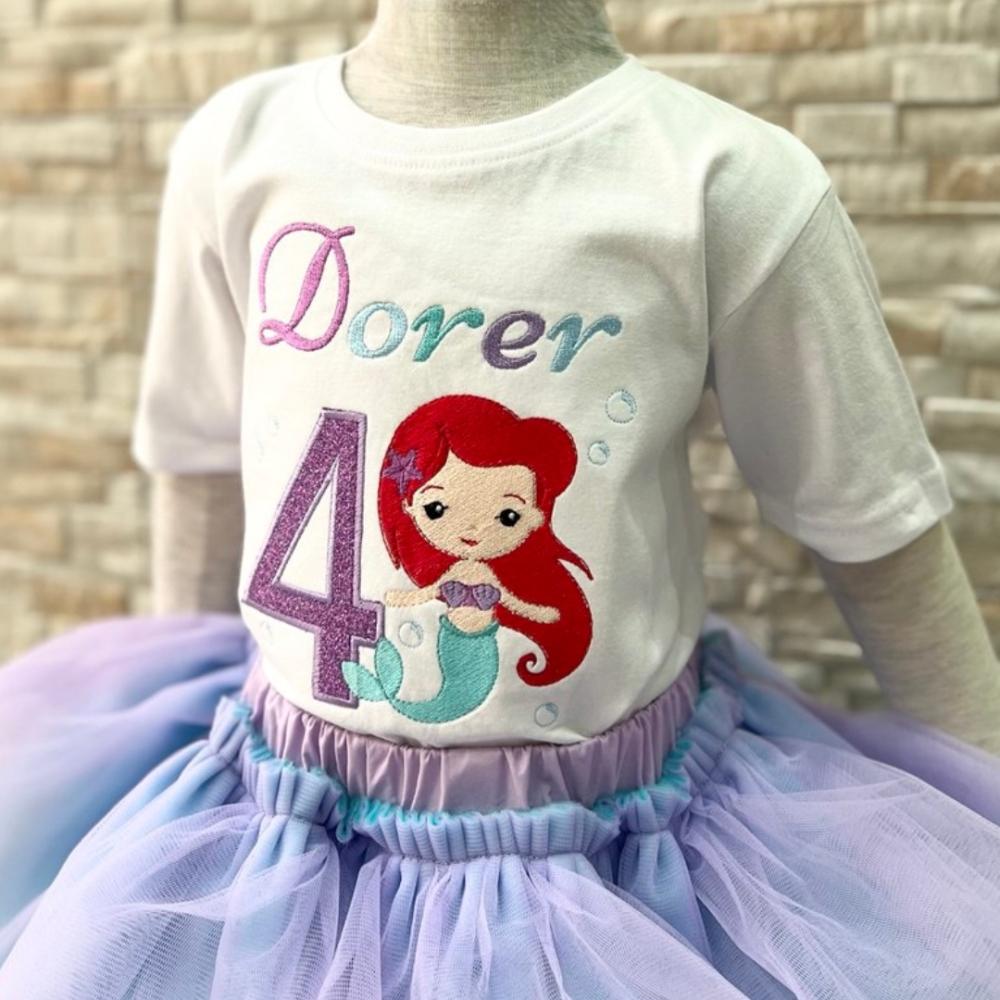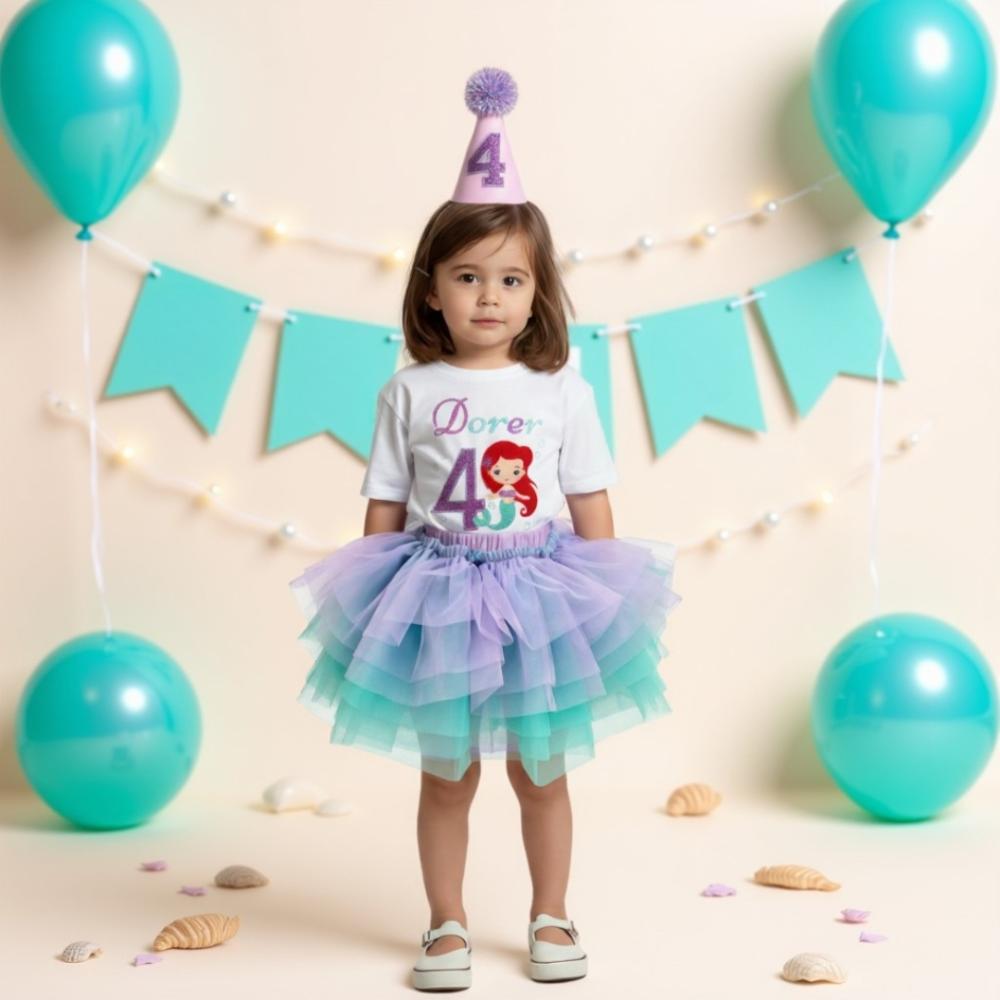 يأتي التيشيرت بتطريز احترافي عالي الجودة لشخصية حورية البحر، مع تنورة تول منفوشة بدرجات الليلك والتركواز لتمنحها لوك ملكي يناسب جلسات التصوير والاحتفالات والمناسبات الخاصة.