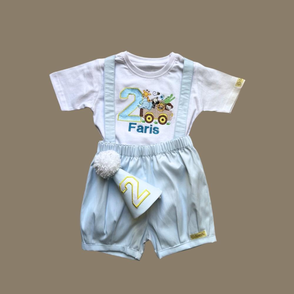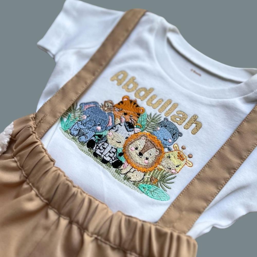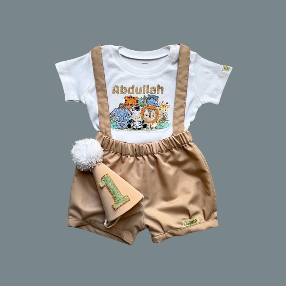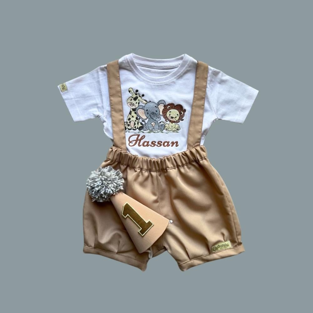 طقم ولادي 3 قطع (تيشيرت و شورت بحمالات مع قبعة) بثيم سفاري .. متوفر من عمر 1 - 10 سنوات