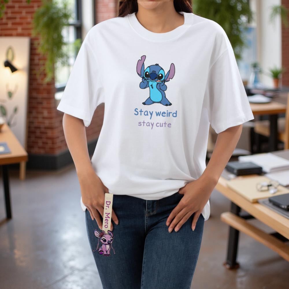 👕 تيشيرت أبيض قطن 100% مريح وناعم بتصميم شخصية ستيتش المحبوبة