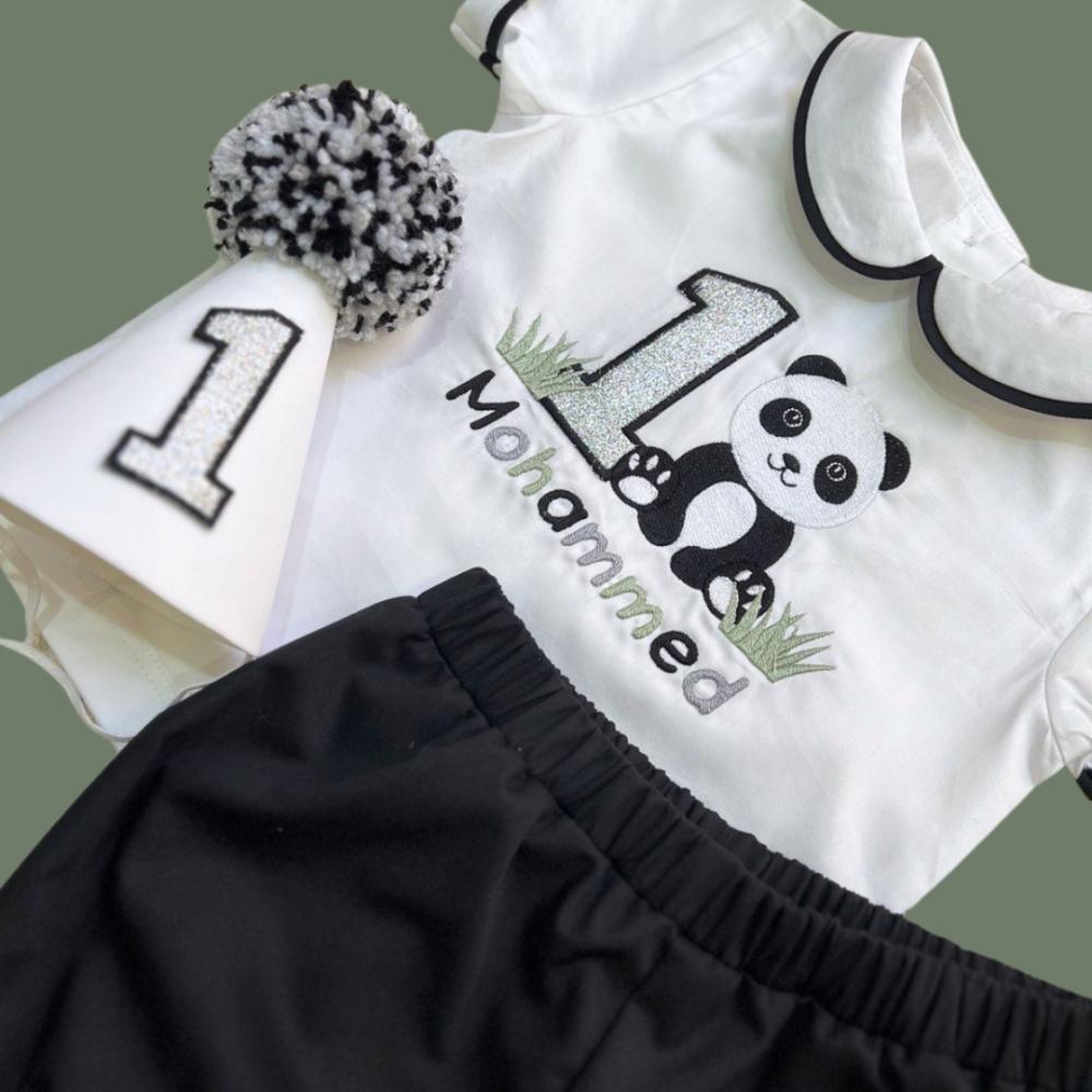 بدلة للأولاد بتصميم دب الباندا هي بدلة مميزة وجذابة تجمع بين الأناقة والمرح. تأتي بتصميم عصري يضم ثلاث قطع: