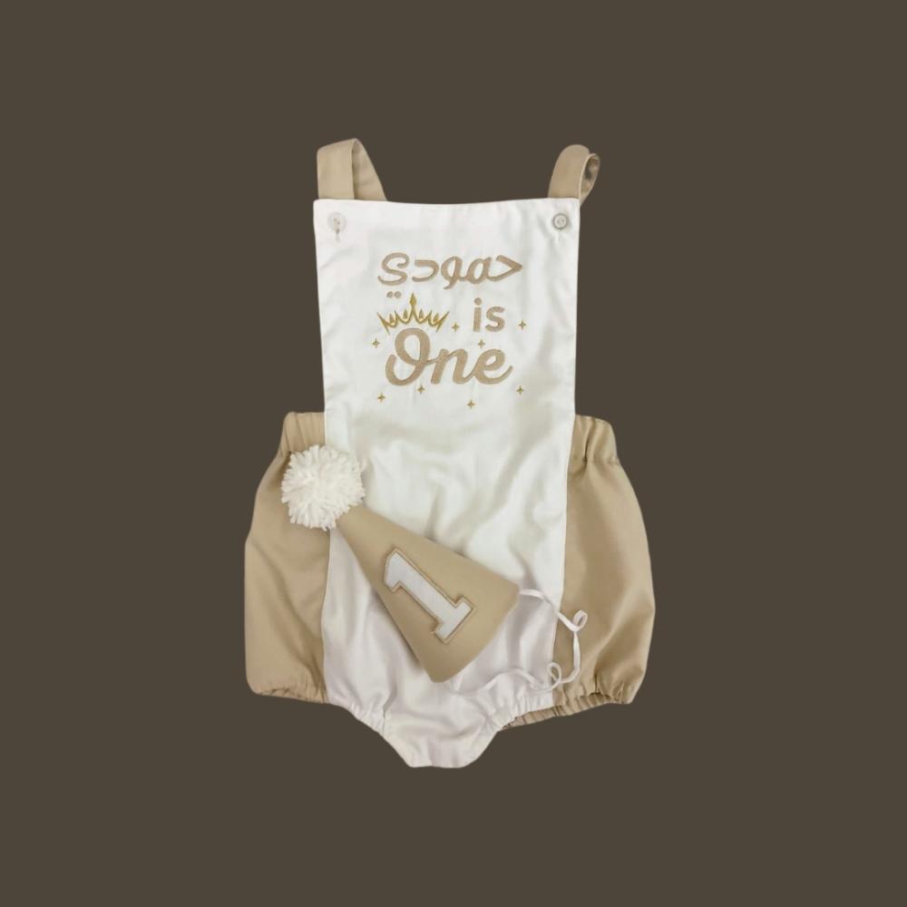 طقم رومبر باللون البيج مع قبعة للاحتفال بميلاد عمر سنة / سنتين