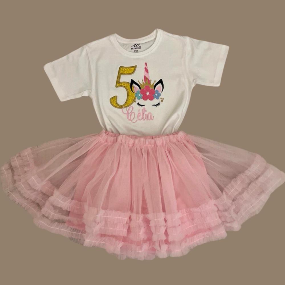 طقم مكون من تنورة توتو و تيشيرت من القطن 100% .. بتصميم اليونيكورن